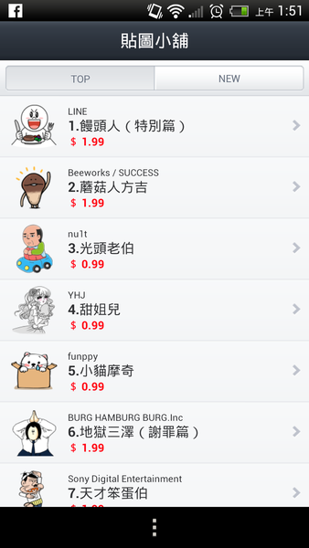 ▲ Line 以多種可愛的大表情圖案在通訊軟體中獨樹一格,現在推出了購買的服務,還能夠贈送給朋友呢!
