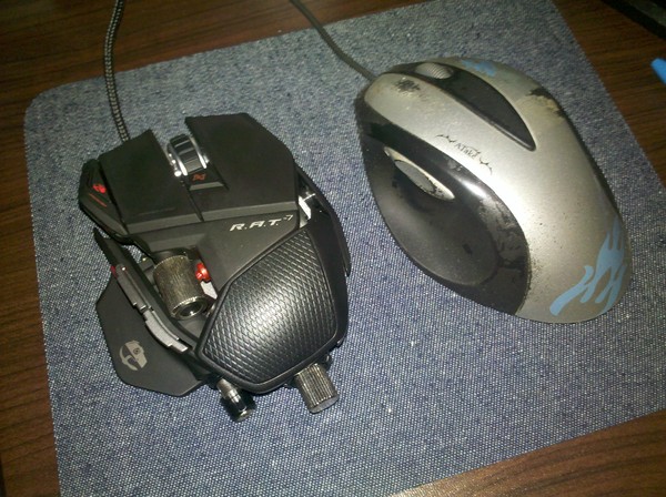 實際上機測試,不由得在心裡罵了幾句髒話,好重好難移動,原來滑鼠預設把配重砝碼全上,5個6公克的配重塊就讓我的纖細玉手直呼受不了,趕快把它卸下裝到收納盒裡。結果還是比我原本的滑鼠還要重,沒辦法,這就是價格之間的差距(500元比3000元,一隻R.A.T. 7就可以買6隻原本的老滑鼠),不過還好用了幾天以後漸漸習慣。