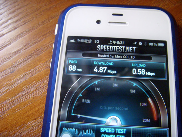 安裝上鋁框之後,信號可以明顯看到信號掉了一格,而且下載的速度下降到 4.87Mbps 。