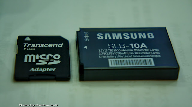 ◎機底有腳架孔(塑膠)、電池與記憶卡插槽(SD)。