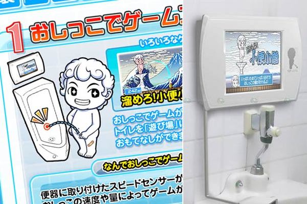 日本 SEGA 推出了一款名為「Toylet」的廁所遊戲,玩家可以一邊上廁所一邊玩電動,讓你不在上廁所時放空了。 遊戲的操作全部憑藉男玩家的小便力道來操作,小便池裡的感測器會測量出尿意所觸擊到的力道跟位置,而螢幕則會顯示遊戲的畫面跟獎勵。每一部遊戲機上都有四款不同的小遊戲,有利用高壓沖水洗掉塗鴉的遊戲,還有將尿液充當強風來掀起女生裙子的遊戲。 小便遊戲內容: 資料來源 1 個人說讚 收藏 快速回應 引言回應