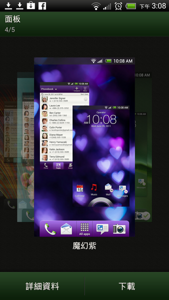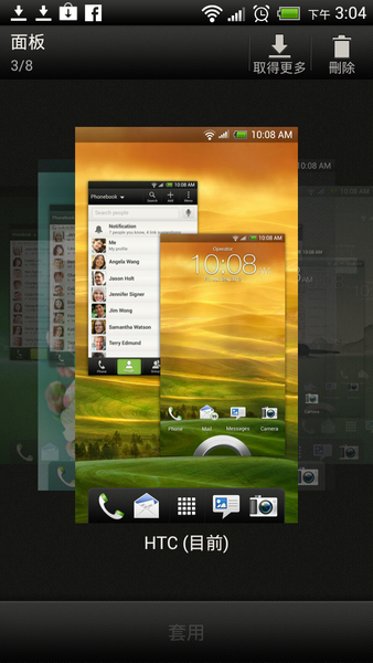 hTC Sense 從 3.0 開始就提供了自訂面板與解鎖面板等等的功能,類似電腦上更換佈景主題的功能,更準確的說就像是以前 SE 手機的自訂主題功能(想當年 K700i 上的網球遊戲真是讓人為之驚嘆阿),而 Sense 4.0 一開始在 OneX 上市的時候還沒有提供面板下載,最近這功能已經開放囉,且提供了更多種的面板選擇。