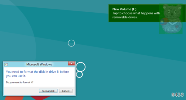 既然E:碟一直強調要格式化才能使用,好吧!就給他Format下去、順便讓大家嘗鮮嘗鮮瞧瞧WIN 8的格式化畫面有沒有不同。