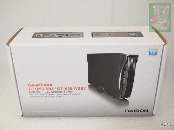 對了~他是Raidon SafeTANK 系列設備、包裝上還有GearTank標示,是一款one Bay Storage Solution 具備 eSATA 與 USB 3.0的高速介面的外接"可抽換式"硬碟盒,有W的如前所說明、就變成集目前Firewire 800 / eSATA / USB 3.0三大高速介面於一身的Exchange + External HDD BOX,這一款是適用於3.5"
