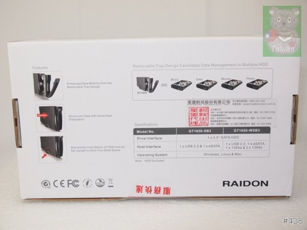 由包裝外觀可以看到他有GT1650-SB3與GT1650-WSB3兩型、差異在W為FireWire裡的W,所以咯~就是有FireWire 800 ( IEEE 1394b )的功能,對Mac一族與需要做個人影音剪接還有大容量與攜帶需求的個人或是SOHO 與小型影視廣告與製作公司及外派或是旅行蒐集素材當"前進基地"使用是相當適合的,至於為何強調"外派"與"前進基地"的概念,不是所有外接與移動式硬碟都有這樣的優勢嗎?呵呵~不一樣不一樣、用Savemore代理的Raidon外接儲存裝置就是不一樣,後面再分享這部樣的地方咯!