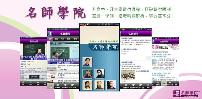 1. 現在您也可以在 Android 上一窺名師學院精彩課程,打破以往在家學習限制,現在只要利用手機即可搶先取得專業名師解析學測及指考準備方向,超前學習,節省讀書時間,享有最佳教育資源。