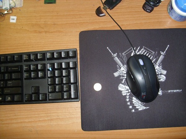 換成CM鼠墊,滑鼠旁邊放一塊錢當比例尺(這鼠墊真的好大...)