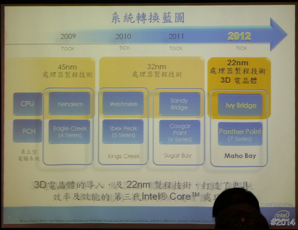 ① 由Sandy Bridge 的 32nm 演進至 Ivy Bridge 的 22nm。