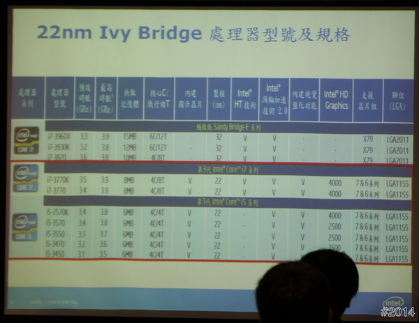 22nm 的 Ivy Bridge 處理器型號及規格!