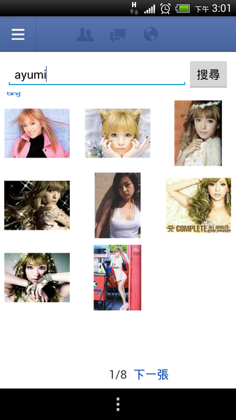 ▲ 例如我在這邊選擇搜尋「Ayumi」,就會跑出許多濱崎步的照片。臉書合作的搜尋引擎是微軟的 Bing 搜尋。