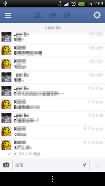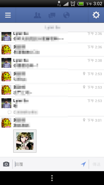 在我們使用 Android 上的臉書程式時,如果有朋友丟訊息給你,就會在上頭跳出紅色的+1提醒,點一下就可以進入聊天模式。你也可以自己點進去丟朋友訊息。而臉書即時通還有一些小功能藏在右上角的「齒輪」中。