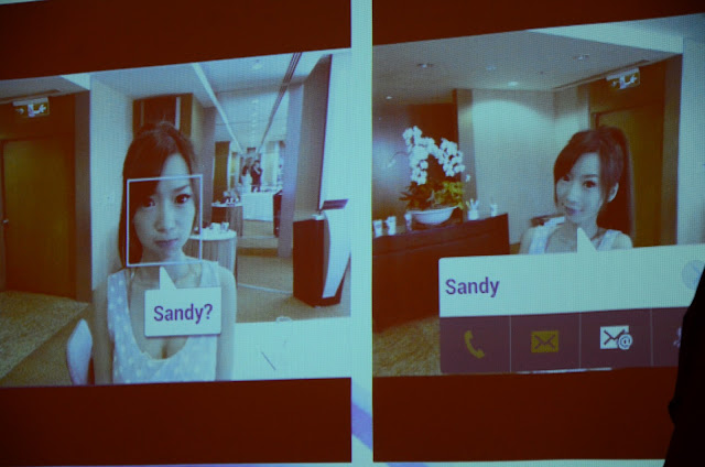 圖為Alias標記主持人Sandy,S3記住後會自動辨識,並可使用撥號、E-mail分享、Facebook分享等功能。