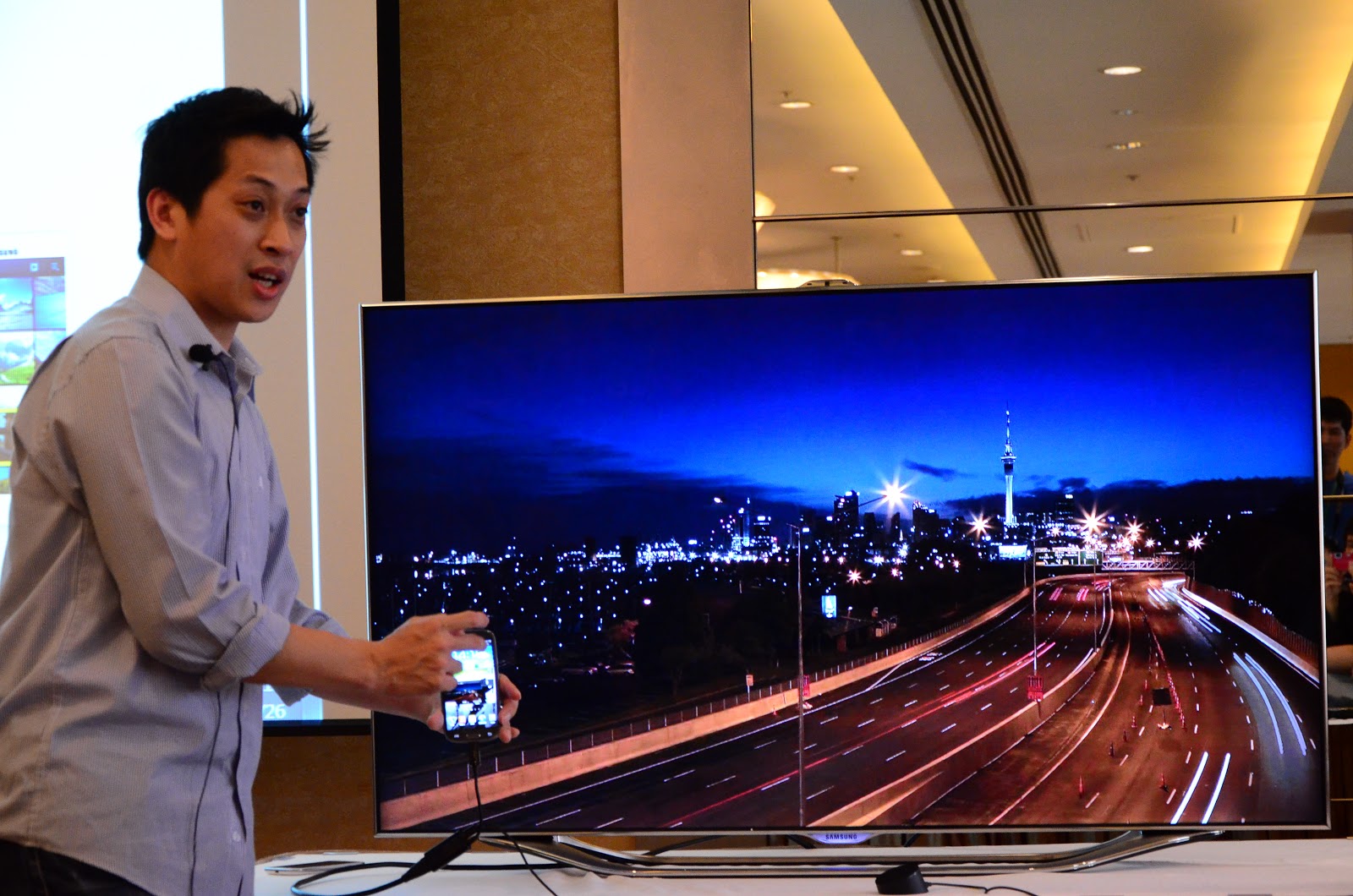 圖為三星PM ERIC示範S-Voice,但也因環境吵雜而失敗。