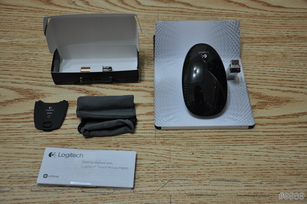 打開後很簡單的配件,滑鼠、電池、unifying接收器、說明書、攜售用的袋子