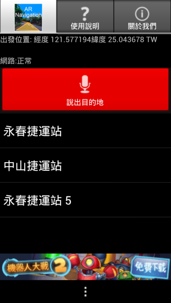 ▲ 設定導航終點時是使用語音辨識,成功機率還不錯,我在菜市場十分吵雜的情況下都能夠辨識出來。目前還沒有「我的最愛」的景點收藏功能可用,但開發小組說會是下一次改版的重點。