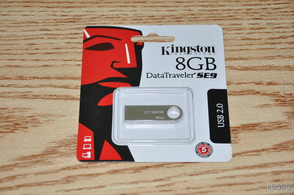 收到了kingston寄來的大包裏,打開後裡面是小巧的DTSE9,正面清楚註明DataTraveler,8GB,USB2.0,5年保固字樣