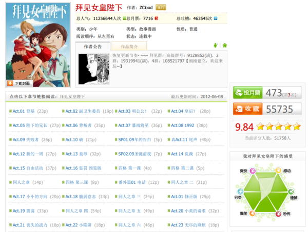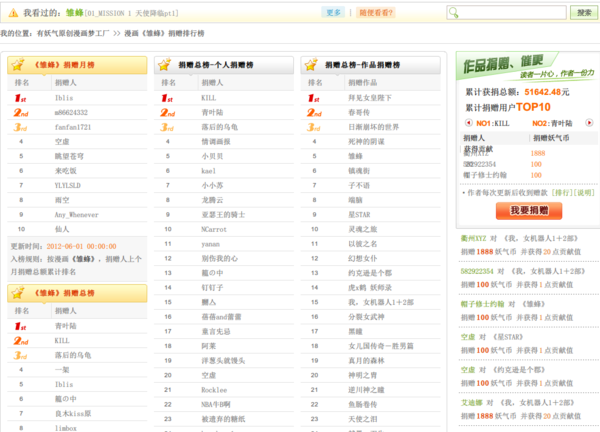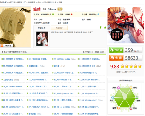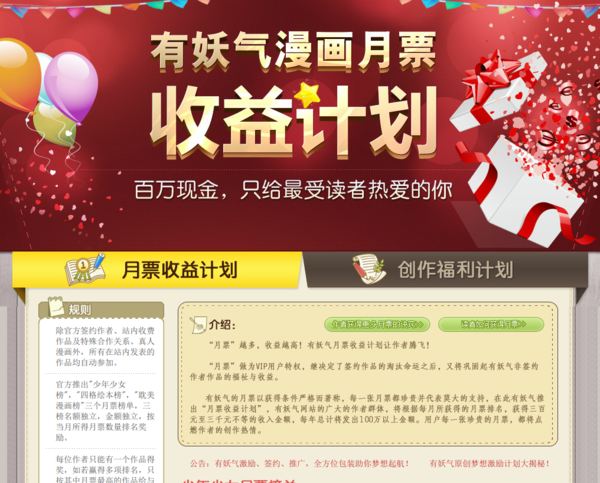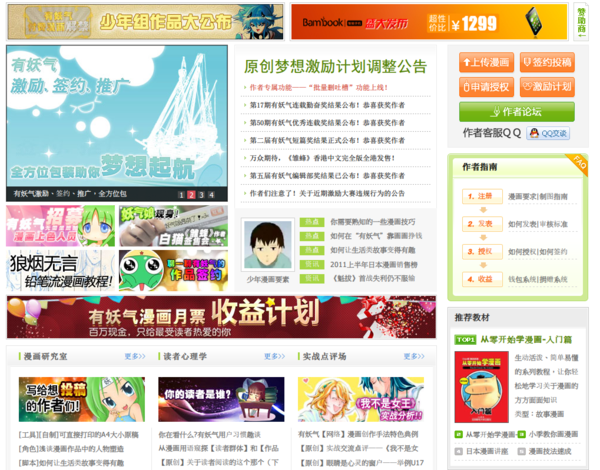 與在上篇介紹的台灣網站目標不太相同,「有妖氣」很明顯的就是試圖建立起一個獲利的生態圈,來招攬更多的素人漫畫家,同時也吸引更多的讀者,以及更多的金錢。這種獲利方式在小說網站例如「起點」、「小說頻道」等都獲得了成功,目前「有妖氣」看起來也經營的頗為生色。