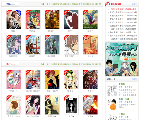 ▲ 中國的「有妖氣」漫畫網站。