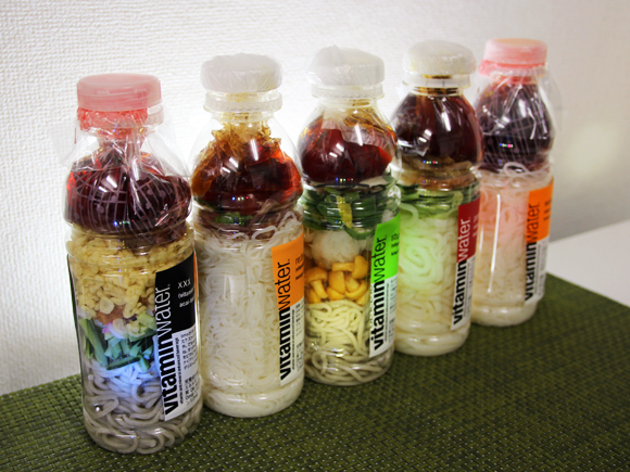 創意新吃法,日本推出搖搖寶特瓶涼麵 生活 · 萬磁王 · 發表於 2012-06-22 15:29 · · 檢舉 列印版 twitter plurk 1.0萬閱讀次數 夏天到了來碗清涼的涼麵絕對是不錯的選擇,可是有時你是不是會覺得涼麵在攜帶上有點不太方便,現在日本就推出寶特瓶裝的涼麵包裝,讓你在攜帶上更加方便。 裝在寶特瓶裡面的涼麵,看起來是不是很像飲料啊! 看起來真的很特別啊! 攜帶起來比較不空間。 上面是醬料包裝。 要吃的時候只要將上面醬料袋戳破,醬汁就會自動流到下面,接著再均勻搖晃就可以。 可以切開上蓋來吃。 或是直接用灌的XD 造型真的是很特別啊! 操作方法: 資料來源 讚 收藏 快速回應 引言回應 登入來回應 header home