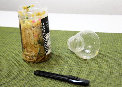 夏天到了來碗清涼的涼麵絕對是不錯的選擇,可是有時你是不是會覺得涼麵在攜帶上有點不太方便,現在日本就推出寶特瓶裝的涼麵包裝,讓你在攜帶上更加方便。 裝在寶特瓶裡面的涼麵,看起來是不是很像飲料啊! 看起來真的很特別啊! 攜帶起來比較不空間。 上面是醬料包裝。 要吃的時候只要將上面醬料袋戳破,醬汁就會自動流到下面,接著再均勻搖晃就可以。 可以切開上蓋來吃。 或是直接用灌的XD 造型真的是很特別啊! 操作方法: 資料來源 讚 收藏 快速回應 引言回應