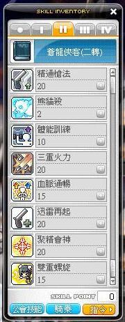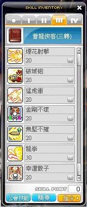 一轉龍捲擊因為施展速度慢,2轉馬上就會被替代,所以只要點1,而狂爆衝擊只要點10就行了,其它都滿。