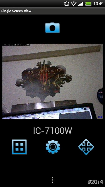 IC-7100W 本體正面 - 1/4"130畫素的CMOS鏡頭、麥克風、指示燈由左自右代表:電源、聲音、區堿網路、無線網路