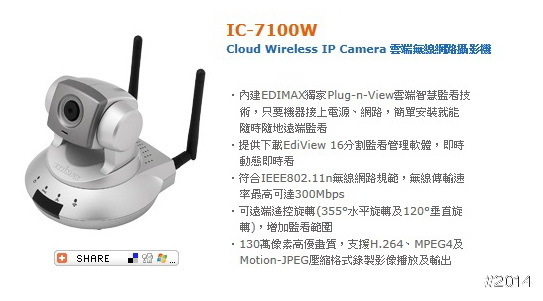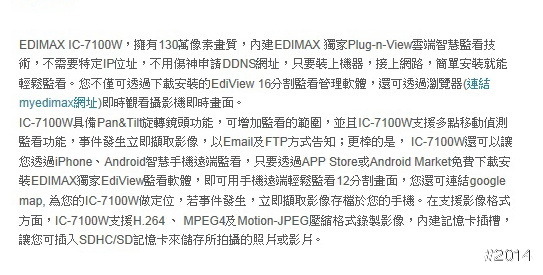 先看一下官網對於 EDIMAX IC-7100W 的介紹(現在扯到雲端的產品真多…)