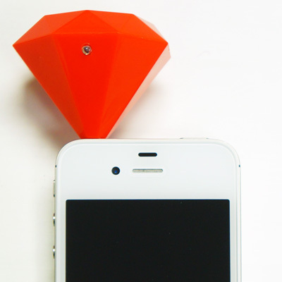 這款來自日本,造型看起來像鑽石的 MP3 小喇叭,只要透過手機上的3.5mm 耳機孔就能把聲音播放出去。甚至也能透過 USB 傳輸線將電腦裡的音樂播放出來。
