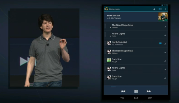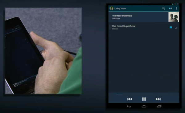 ▲ 將 NexusQ 接上電視,你就可以用你的 Nexus7(或是其他裝置)來將 Google Play 上你所喜歡的內容直接點播過去,音樂就會在你所選定的 NexusQ 所連結的電視開始播放。