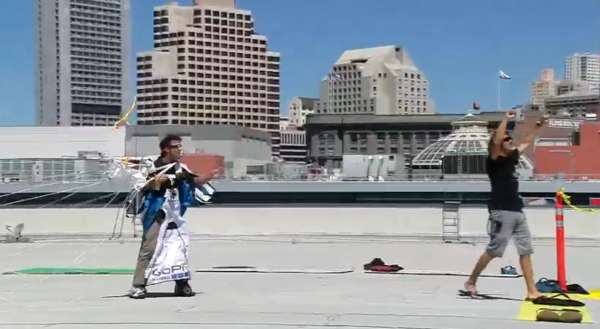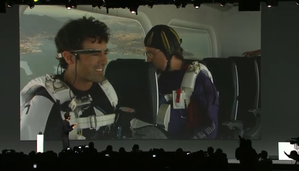 ▲ 是的,Google 的工程師將會戴著 Google Glasses 在空中即時為我們 Live,這都會經由 Google Glasses 的攝影機將影像傳送到 Google+ 上來進行多方視訊聚會,並投影到大螢幕上給大家看。