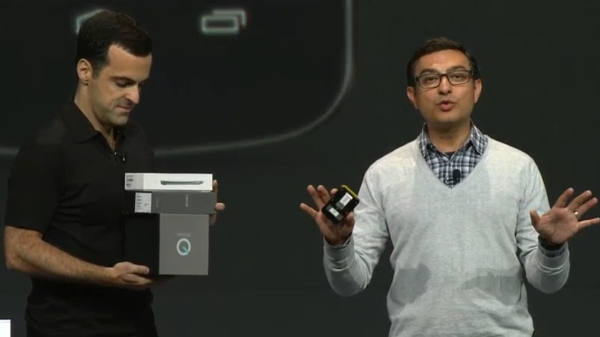 不只軟體上有所更新,在硬體上這次 Google 一次發布了兩種硬體,呃,其實是三種,但超酷炫的 Google Glasses 目前還不會提供給一般消費者購買,只提供給硬體開發商與現場的 Google I/O 與會者預購,售價為 1500 美金