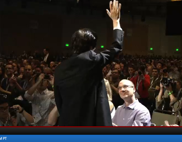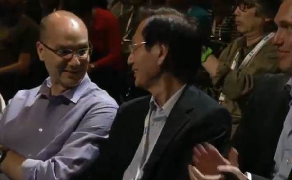 ▲ 華碩董事長施崇棠先生也親臨會場,並向大家致意。請注意旁邊與施崇棠說話的人,它是 Android 系統的生父:Andy Rubin。