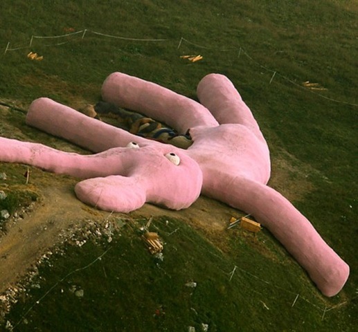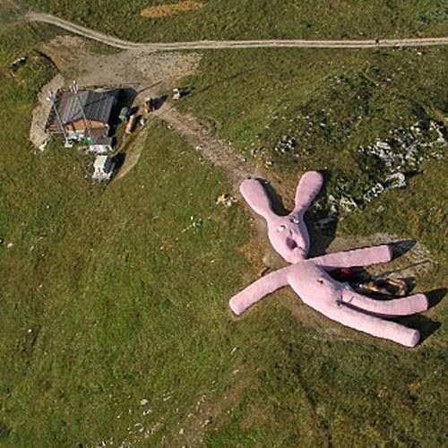 其實這是義大利藝術團隊花了五年時間,在阿爾卑斯山附近,用羊毛布縫製出的一隻粉紅色兔子,看起來真是相當的驚人啊!