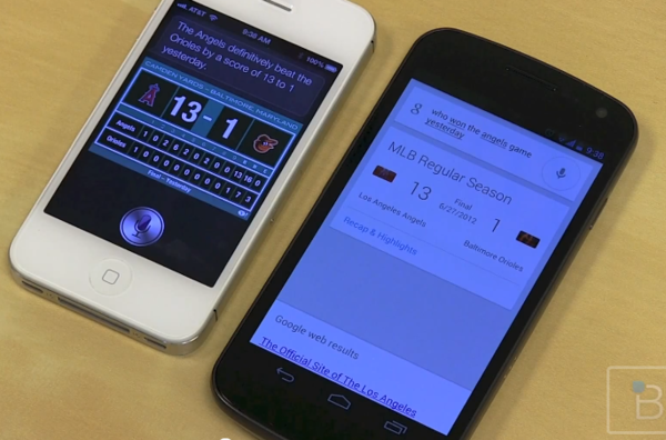▲ 誰昨天贏了加州天使隊?Siri 直接秀出了九局的比數,而 Google Now 則只有最後比數,然後提供了回顧與賽後精華的連結。