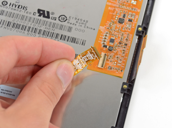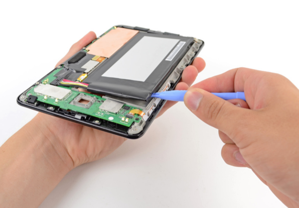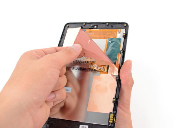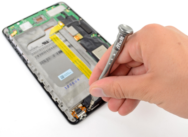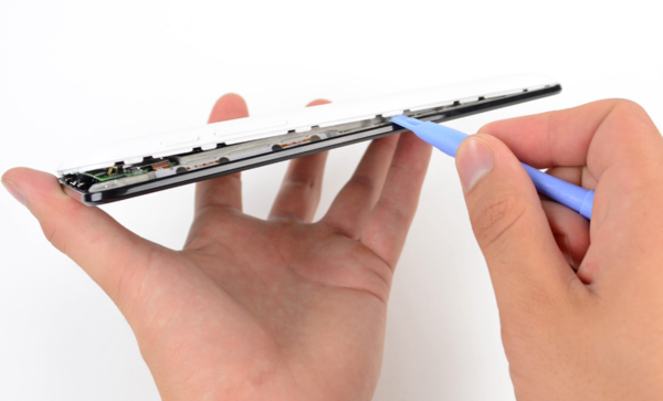 ▲ 拆卸不需要轉螺絲,直接將螢幕撬開與機身分離,iFixit 也不斷稱讚這點,認為 Nexus7 實在郝郝拆很好拆,且復原回去也十分容易。