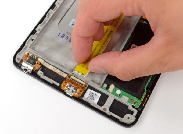 ▲ Nexus7 正面一顆實體按鍵都沒有,一片平整。(來源:ifixit,以下皆同。)