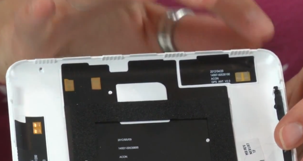 ▲ ifixit 拿到的是白色背蓋的 Nexus7。背面沒有多餘的花紋,僅在下方有一條喇叭孔。