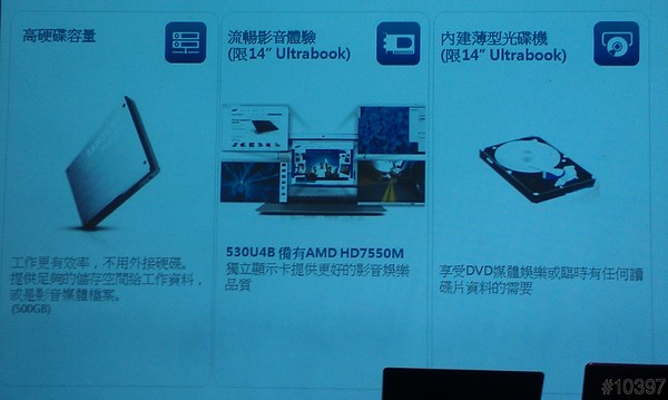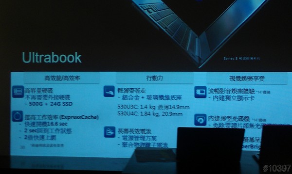 Series 5 ULTRA 530U 為三星最新 Ultrabook 產品,搭載第三代 Intel Core 處理器,14”內建 1GNVIDIA GeForce GT 620M 獨立顯卡與內建薄型光碟機。14 吋與 13 吋兩款尺寸皆配備 24G SSD 固態硬碟再加配 500G HDD 硬碟,是速度與儲存容量兼具的 Ultrabook。ExpressCache 技術提供速度快感,快速開機只需 16.6 秒,自休眠恢復至開機狀態只需 2 秒。