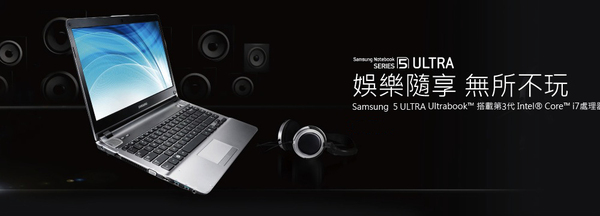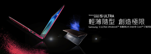 ▶ 於今年稍早的 Computex 台北國際電腦展,三星電子首度參展,並且展示出全系列的 Ultrabook 筆電,顯示打入輕薄筆電市場的決心。以輕薄外型以及搭載第三代 Intel Ivy Bridge i7 的高效能,從最頂級的 Samsung Series 9 到搭載 JBL 立體聲喇叭的 Samsung Series 5 都各具特點,為各種不同的消費者推出適合的筆電。