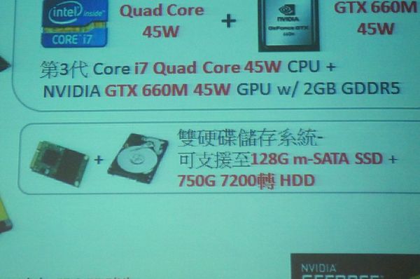 ▲P2542G 採用了更高階的 Intel 第三代 I7 四核心處理器 Ivy bridge Core I7-3610QM 2.3Ghz,可以說是一台移動型高畫質遊戲機,獨顯配置的是 GTX 660M,其中GTX的X就是代表這張顯卡是專門為遊戲需求而設計,在先前的投影片中也可以看到這張顯卡的 DirectX 測試是表現最優秀的,比起內顯多了四倍左右的FPS。要盡情享受遊戲的快感還得搭配一塊不差的螢幕,非常令我驚訝的是 P2542G 的螢幕解析度竟然是 Full HD 1920*1080 的高畫質,玩遊戲時人物邊緣便不會明顯有鋸齒的感覺,瀏覽網頁或遊戲介面的字體也較為清晰。另外可能 P2542G 鎖定的消費者是對硬體比較有要求的玩家,所以預先保留了另一顆硬碟空間讓消費者自行選配所需的硬碟,看是要更大容量的 HDD 還是追求高速存取的 SSD。