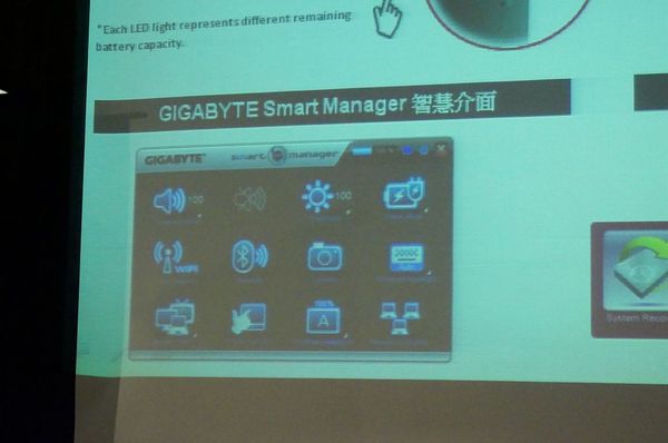 ▲GIGABYTE Smart Manager 是個匯集了使用者經常需要調整的參數的小軟體,可以快速掌握音量、螢幕亮度、鍵盤背光亮度、藍芽、無線網路、觸控板等等設定,減輕使用者必須記下設定快捷的麻煩,讓剛剛接觸 P2542G 的使用者更快速上手。