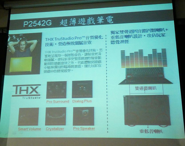 ▲除了 1080P 解析度的螢幕之外,P2542G 內建了一個藍光光碟燒錄機,像我就時常會拍攝高畫質的影片,但是放在隨身碟或記憶卡又擔心哪天突然讀取壽命告終時影片全沒了,這個藍光光碟燒錄機就讓我可以將高畫質影片燒錄置光碟中再放入防潮箱好好保存囉。此外 P2542G 的音效喇叭也送至新加坡經過 THX 的認證,所以可以確保遊戲進行時能有更清晰的背景音樂或是音效呈現。
