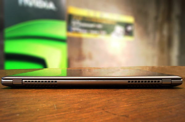 ▲由於U2442 採用的是正常電壓版的處理器又配置獨立顯卡,若這兩者一起全速運作時產生的廢熱可不得了,所以技嘉在機身的後側安排了左右兩個散熱區塊,以免機器溫度提高造成使用者工作時的不適。