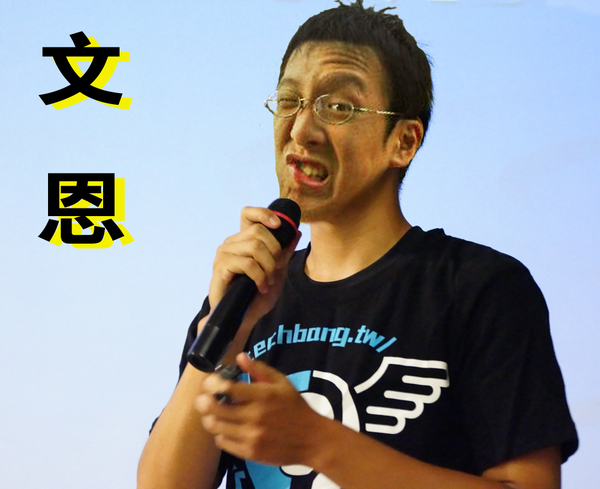 ▲這位是今天的第一位講師,電腦王編輯 國寶大師 ── 文恩,表情超豐富的是不是,在他 T客邦帳號的關於我中,文恩說他好喜歡這張照片的表情把他拍得很威風,因此我就將這表情PS到今天拍的照片上拉,文恩別追殺我啊(≧▽≦)