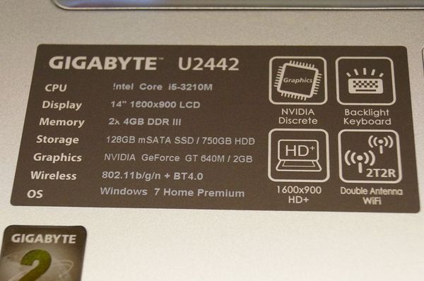▲這張是貼在 U2442 觸控板左方的規格貼紙,今天的測試機詳細型號是 U2442N ,所以搭配的處理器是 Core I5-3210M 35W電壓版。不過其實也有更高規的 U2442V 可以選擇,其內搭的處理器就升格為 Core I7-3517U,如果有更高效能需求的朋友就可以考慮這個版本。