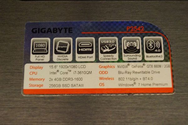 ▲觸控板左側置腕區的貼紙,最後我們來複習一下 P2542G 的規格,在處理器方面,P2542G 採用的是 Intel 第三代 Core I7-3610QM,對於同時執行多的程序或開啟多個網頁分頁會有很大的幫助。而顯卡則是用上了 NVidia 遊戲用 GTX660M,搭配4GB*2的雙通道8GB RAM,以及256GB 的固態硬碟,P2542G 根本是集各個零組件的精華於一身,有這麼強悍的硬體,讓我還真想體驗看看用 Full HD 解析度螢幕的 P2542G 來玩即將上市的 激戰2 或是 Blade & Soul 這兩款高畫質遊戲的感覺。