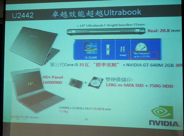 哈囉大家好,今天是我第一次參加技嘉和王團研究室所舉辦的 NVidia 獨顯筆電體驗會,先前沒有參加過類似的筆電活動,開始前還有點擔心會不會等等兩位講師說的我都聽不懂,上網查詢了資料後得知這次技嘉將於活動中介紹的是今年 COMPUTEX 2012 前發表的 GT640M 獨顯 Ultrabook U2442 以及採用了 Intel Core I7 Ivy bridge 晶片和搭配 GTX 660M 獨顯的超薄遊戲筆電 P2542G。