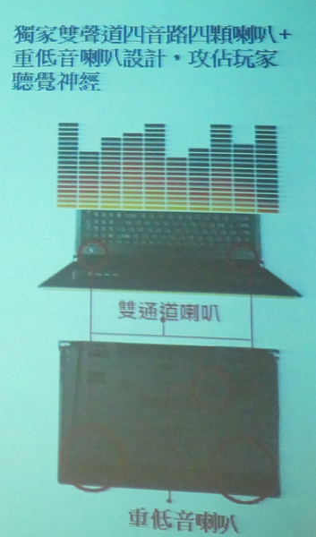 ▲剛剛才說 P2542G 通過了 THX TruStudio Pro 的喇叭音效認證,這回就要提到它機身上的四顆喇叭了,有兩顆雙通道喇叭位於鍵盤上方,另外兩顆則是專門負責重低音這部分頻率的處理,其位置在機背後側,讓玩家可以享受更廣闊的音效聆聽頻率範圍以及更清晰的重現。