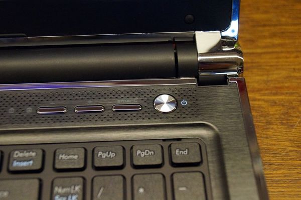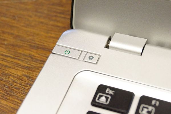 ▲U2442 的電源鍵融入鍵盤區的左上方,配色和周遭面板一樣,看起來並不會突兀,轉軸的設計為左右各一,圖中這個是左邊的轉軸,不過我自己是比較喜歡只有中間一長條的單轉軸設計感覺比較堅固。