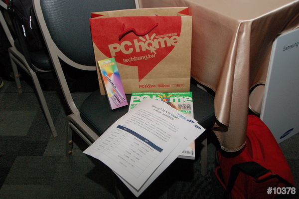 每位參予的網友們都會得到一袋參加禮,裡面有本次流程、7月份的PChome、雷射筆。